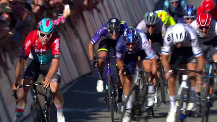 De Lie pedals to the line on one leg - and still wins!