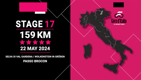 Stage 17 profile and route map: Selva di Val Gardena - Passo del Brocon